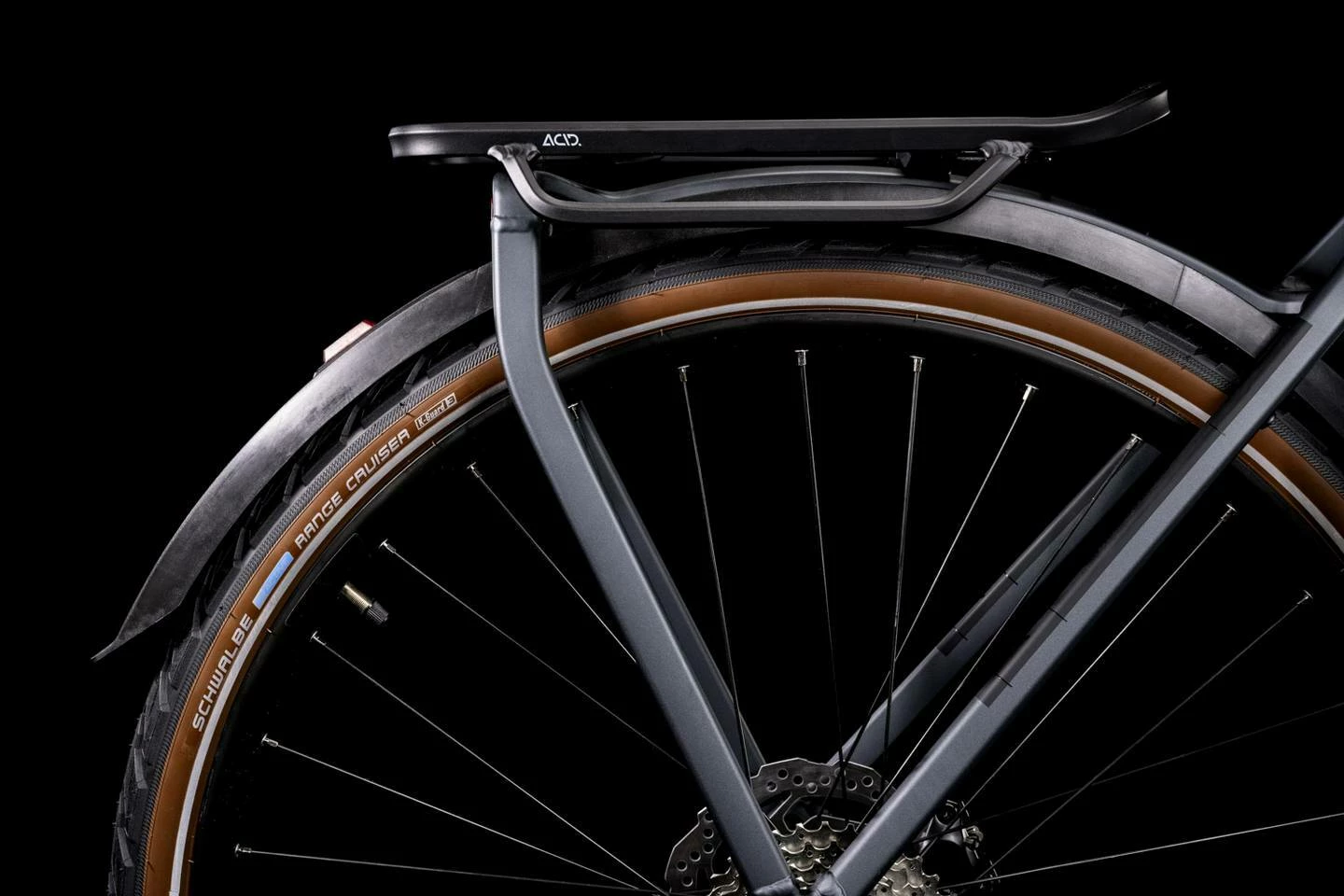 Wir haben den Kathmandu Rahmen für die Saison 2022 komplett überarbeitet. Er vereint sämtliche Highlights des Vorgängermodells, setzt aber noch eins obendrauf. Beispielsweise geht der überarbeitete integrierte Gepäckträger 3.0 nahtlos und formschön in unsere Acid Schutzbleche über. Dazu gibt’s am Hinterrad eine Aufnahme für eine Flat-Mount-Scheibenbremse und einen Seitenständer. Seine cleane, aufgeräumte Optik verdankt das Chassis den im Smooth Welding Verfahren geschweißten Sitz- und Steuerrohrverbindungen. Doch das ist noch lange nicht alles: Wir haben den Hinterbau mit einer Steckachse aufgerüstet und ihm ein konfiziertes Steuerrohr für optimierte Stabilität und Lenkpräzision (selbst bei voller Beladung) gegeben. Und dank innen verlaufender Züge schaltet das Bike dauerhaft geschmeidig von Gang zu Gang und es verlängern sich die Wartungsintervalle. Wir haben an alles gedacht – nur die Zahnbürste, die muss man wohl selbst einpacken.