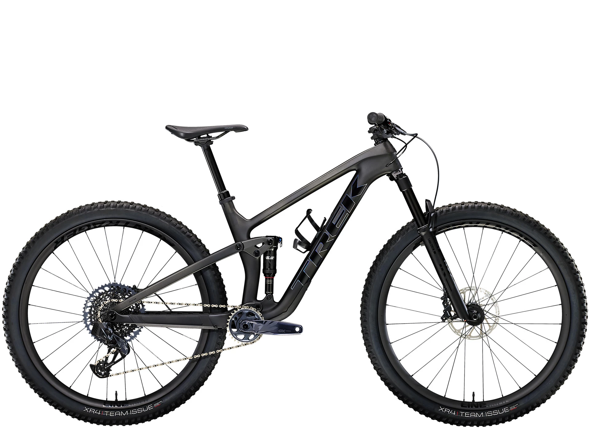 Einen leichten und steifen Vollcarbonrahmen, eine RockShox Pike Select+-Federgabel mit 130 mm Federweg, einen RockShox Deluxe Ultimate RCT-Dämpfer mit 120 mm Federweg und einen drahtlosen elektronischen SRAM GX Eagle AXS-Antrieb mit extragroßem 52-Zähne-Klettergang. Außerdem kommt es mit breiten Bontrager Line Elite 30-Carbonlaufrädern samt Rapid Drive-Nabe mit 108 Zähnen für einen verzögerungsfreien Kraftschluss, einer Bontrager Line Elite-Variosattelstütze und einem Carbonlenker.