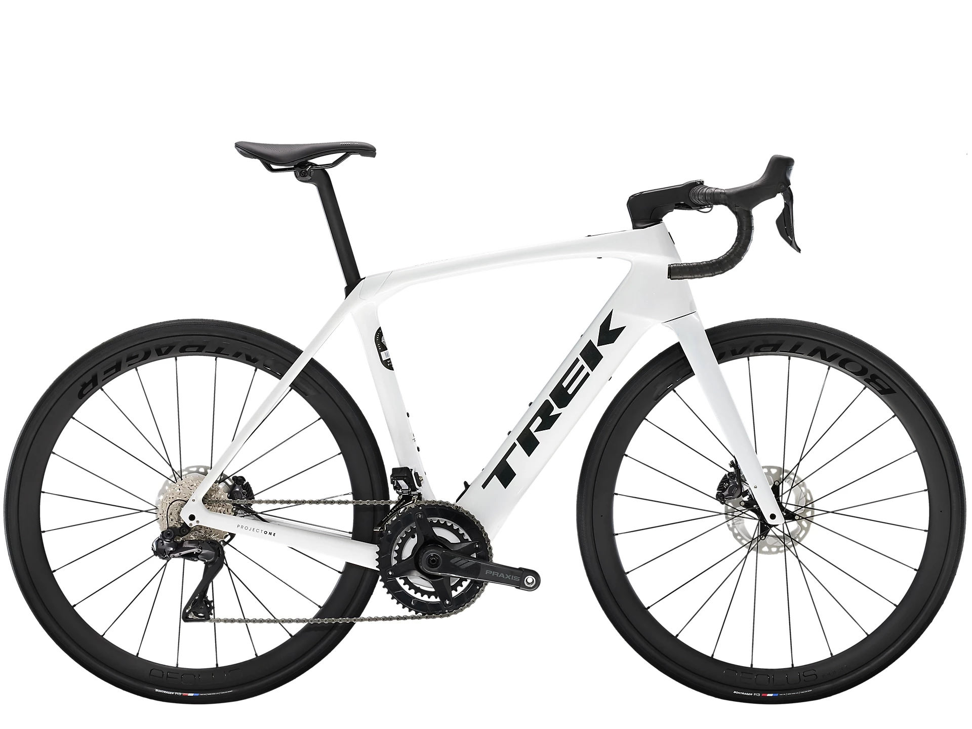 Unseren besten und leichtesten Rahmen aus 800 Series OCLV Carbon mit hinterem IsoSpeed. Einen kraftvollen Harmonic Pinring-Motor von TQ mit einem Drehmoment von 50 Nm, der dich bis zu einer Geschwindigkeit von 25 km/h unterstützt, einen 360 Wh großen integrierten Akku, ein in den Rahmen integriertes smartes LED-Display und diskret in die Bremsgriffgummis verbaute Bedienelemente für den Wechsel der Unterstützungsmodi. Aeolus Pro 37 Laufräder aus OCLV Carbon, eine drahtlose Shimano Ultegra 2×12 Di2 elektronische Schaltung, eine Carbon-Kurbelgarnitur, einen vibrationsdämpfenden Bontrager Pro Iso-Core Lenker und einen RCS Pro Vorbau mit vollständig integrierter Zugführung für eine cleane Optik.
