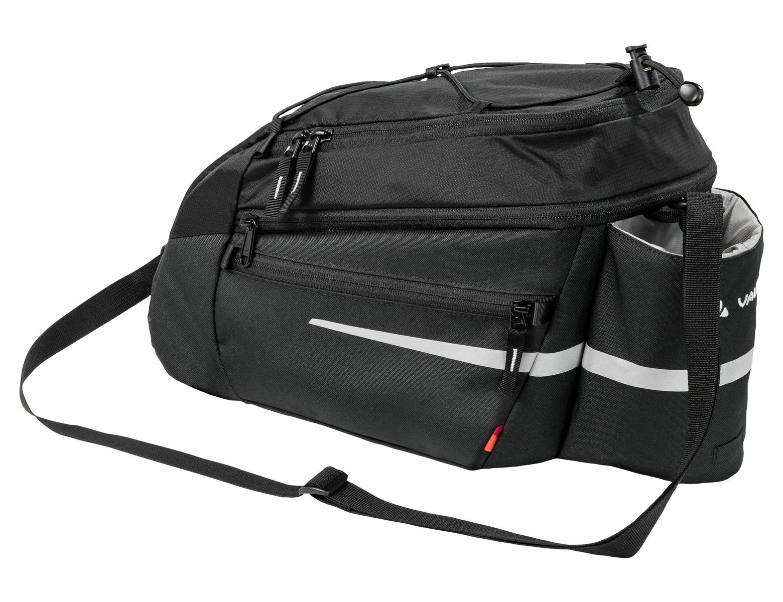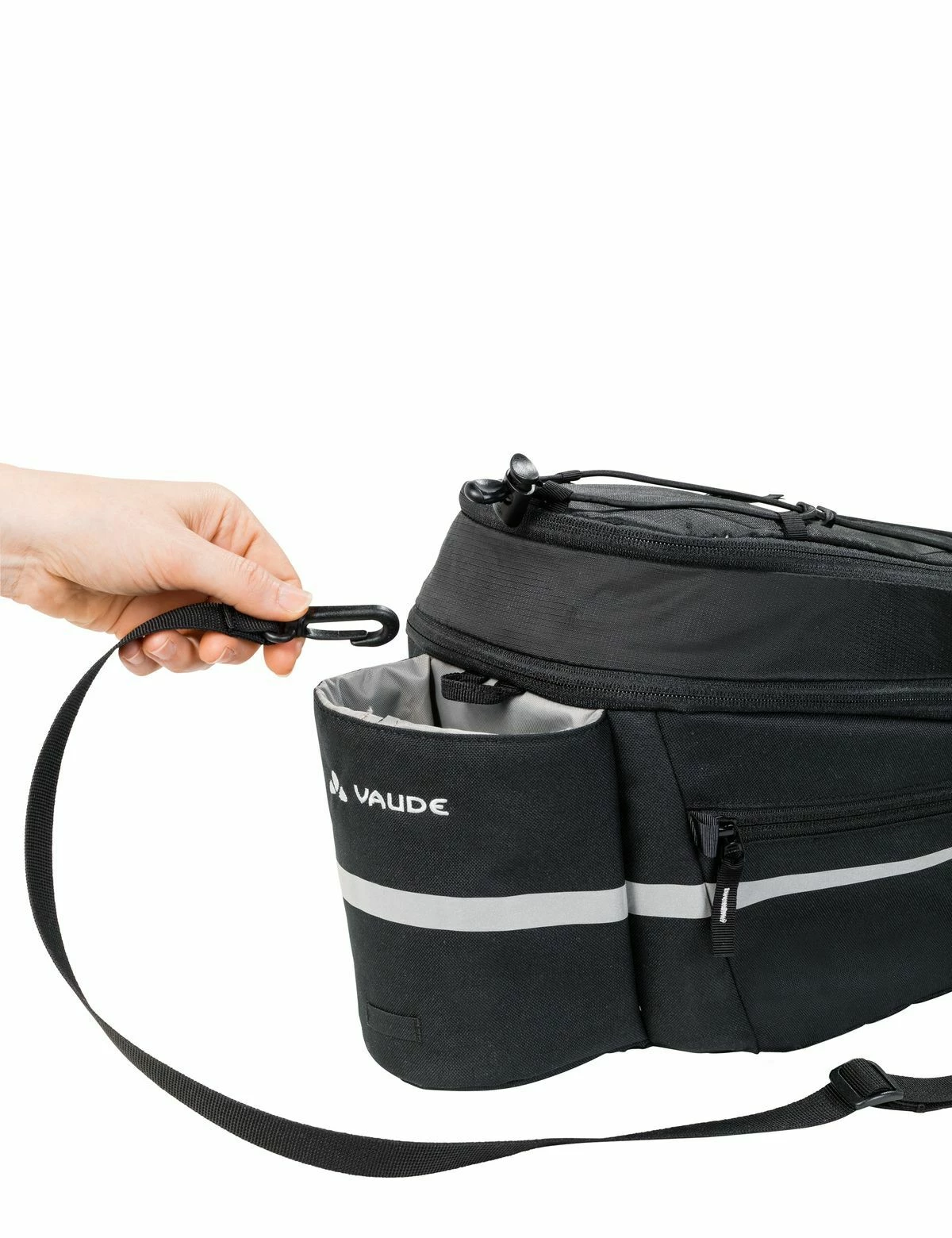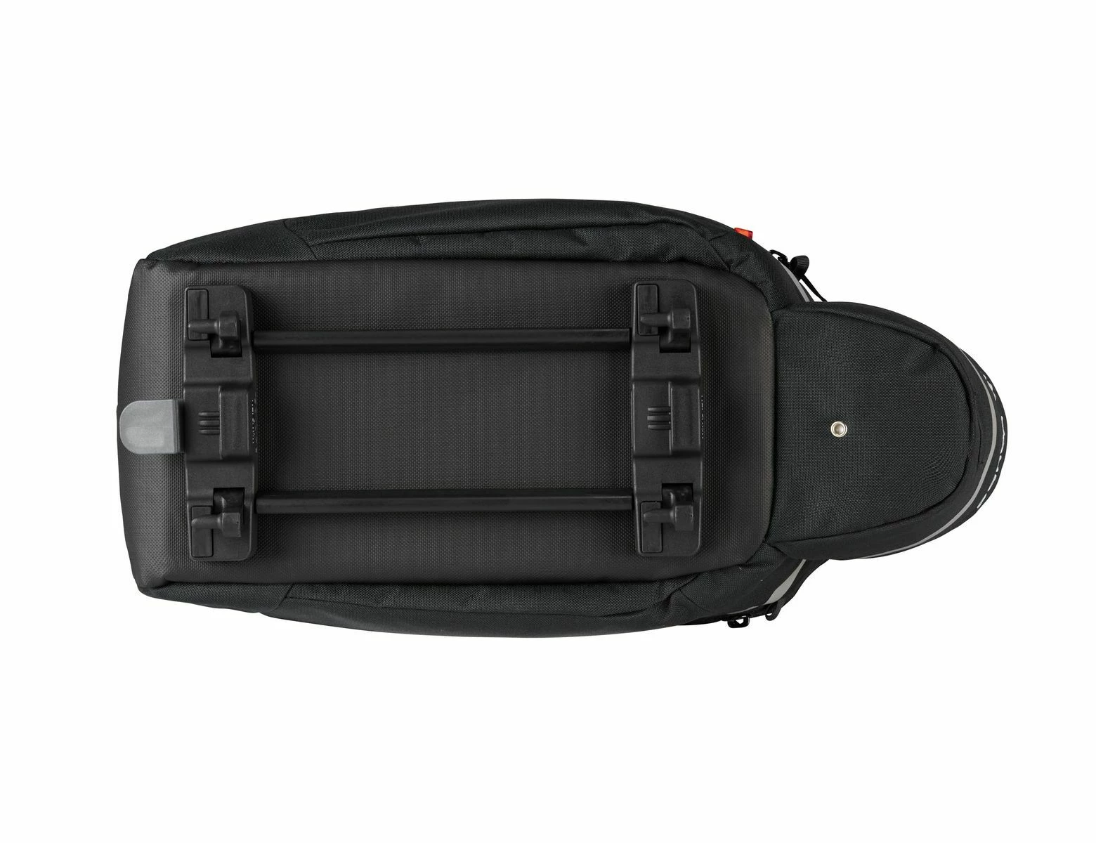 Trägt Dir Dein Gepäck. Die Gepäckträgertasche mit 9+2 Liter Volumen und Flaschenhalter kann mit dem Snap it-Adapter auf dem Gepäckträger des Fahrrads befestigt und abgenommen werden. Darin findet auch Dein E-Bike-Akku Platz. Zusätzliche Verstaumöglichkeit bietet die Gepäckspinne. Nur für Racktime Gepäckträger.