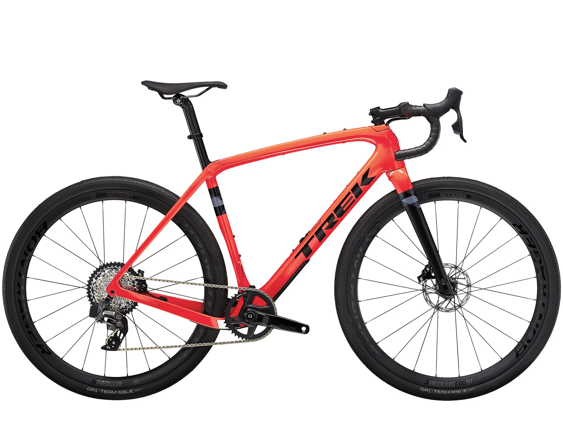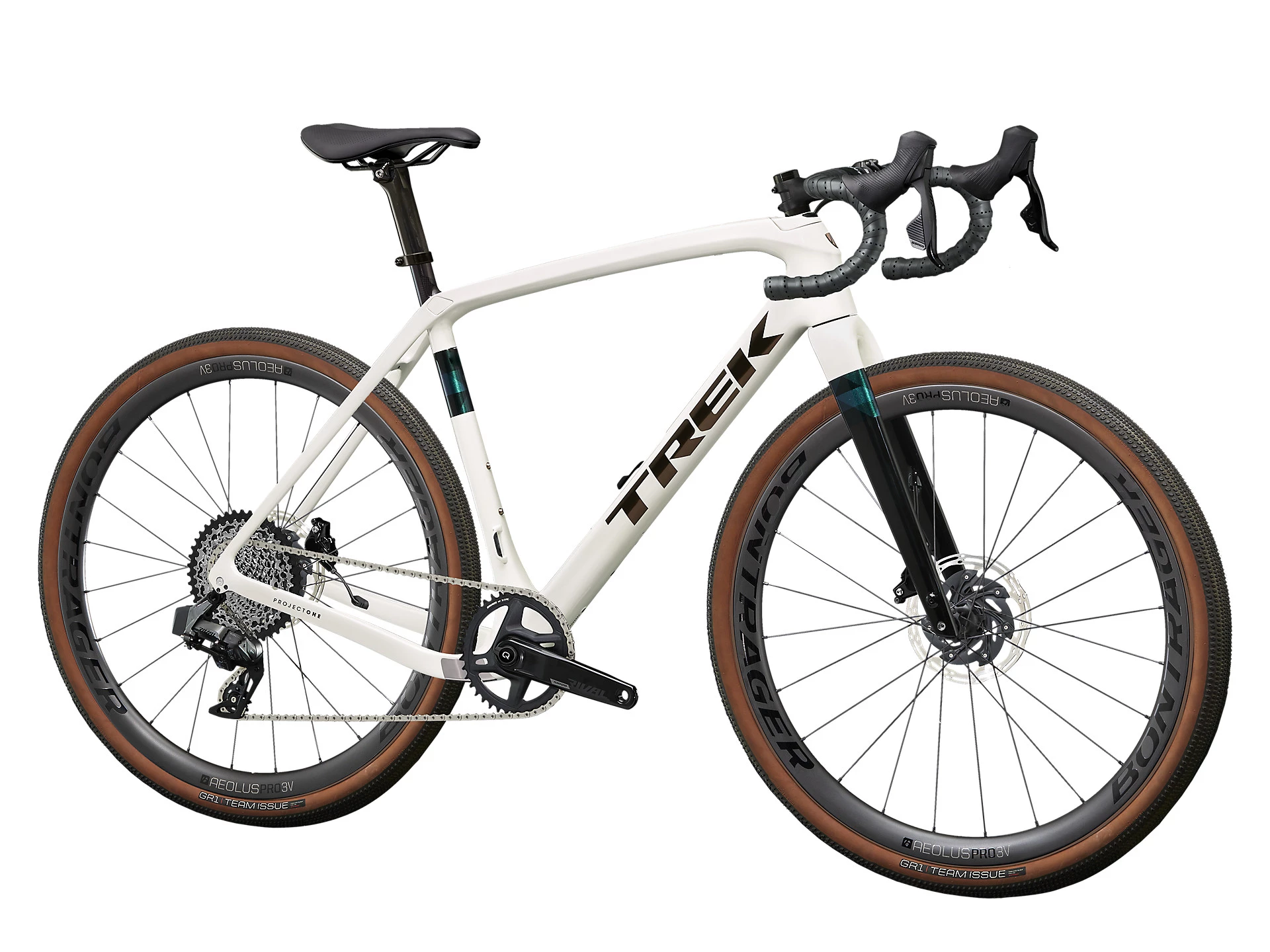 Einen Rahmen aus 700 Series OCLV Carbon mit vorderem IsoSpeed und Carbon Armor, eine progressive Geometrie, die bei hohen Geschwindigkeiten stabil und auf knackigen Anstiegen effizient ist, ein internes Staufach, verborgene Züge, die deinen Taschen nicht in die Quere kommen, und integrierte Befestigungselemente für eine Rahmentasche und Schutzbleche. Dazu gibts eine Carbongabel, SRAMs drahtlosen elektronischen Rival eTap AXS 2×12-Antrieb mit breitem Übersetzungsbereich, Bontragers Aeolus Pro 3V-Laufräder aus OCLV Carbon und breite Gravelreifen im Format 700 x 40C für zusätzliche Stabilität und Traktion. Der Rahmen bietet Platz für Reifen bis zu einer Breite von 45C.