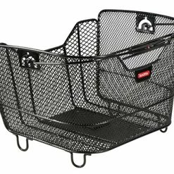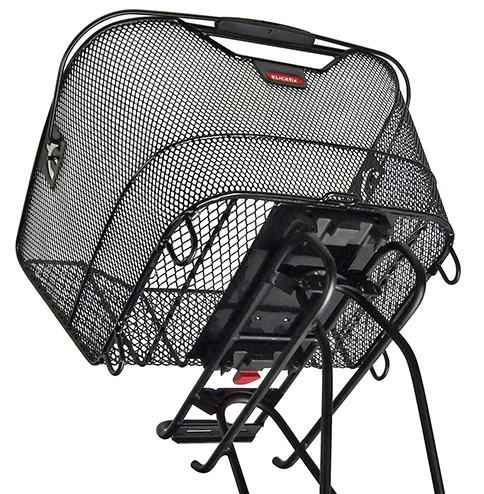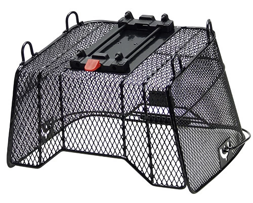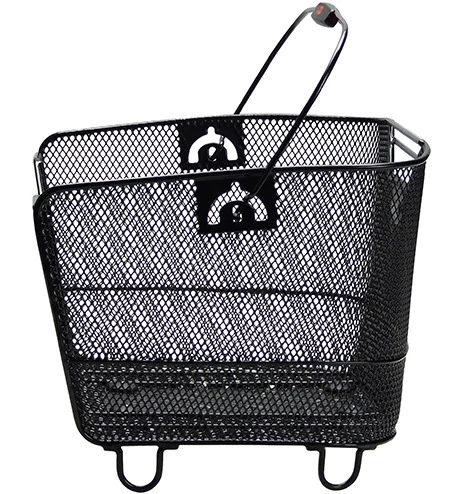 Formschöner längs orientierter, feinmaschiger Korb mit besonders großem Volumen. Der komfortable Griff kann während der Fahrt zwischen die beiden Querstreben des Korbes geklemmt werden, damit er nicht klappert.