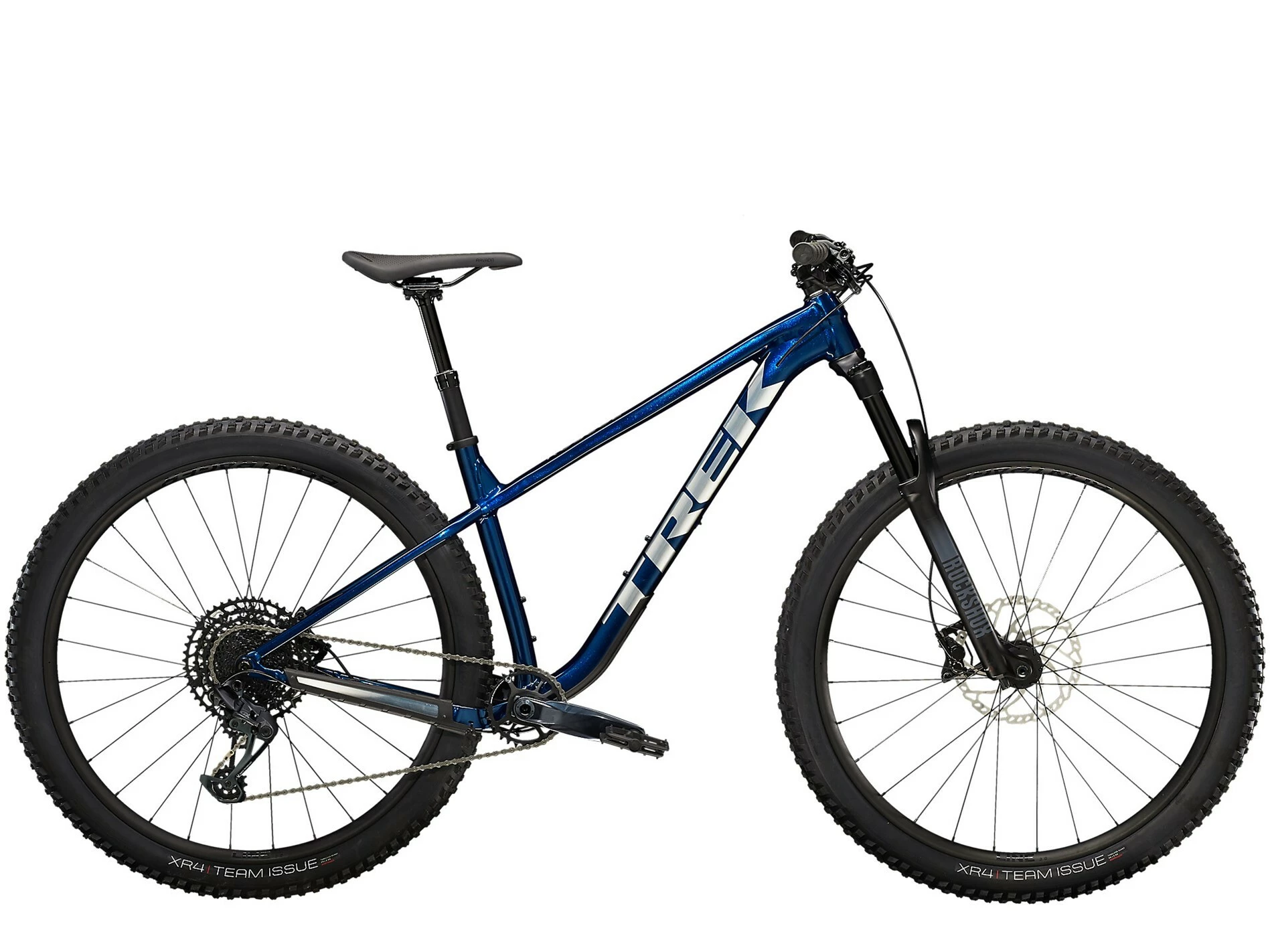 Einen leichten Aluminiumrahmen, eine 140 mm RockShox 35 Gold-Gabel mit Lockout-Funktion, einen SRAM NX Eagle 1×12-Antrieb mit breitem, kletterfreudigem Übersetzungsverhältnis, kraftvoll zupackende 4-Kolben-Scheibenbremsen und eine Variosattelstütze für mehr Bewegungsfreiheit auf Abfahrten, in Kurven und in der Luft. Dazu bekommst du schnell rollende 29″-Laufräder mit Rapid Drive-Hinterradnabe und 108 Zähnen für einen verzögerungsfreien Kraftanschluss sowie griffige, 2,6″ breite Reifen.
