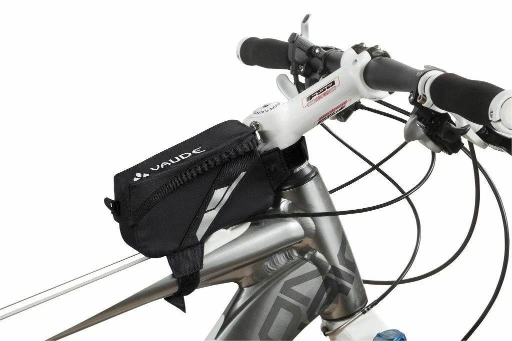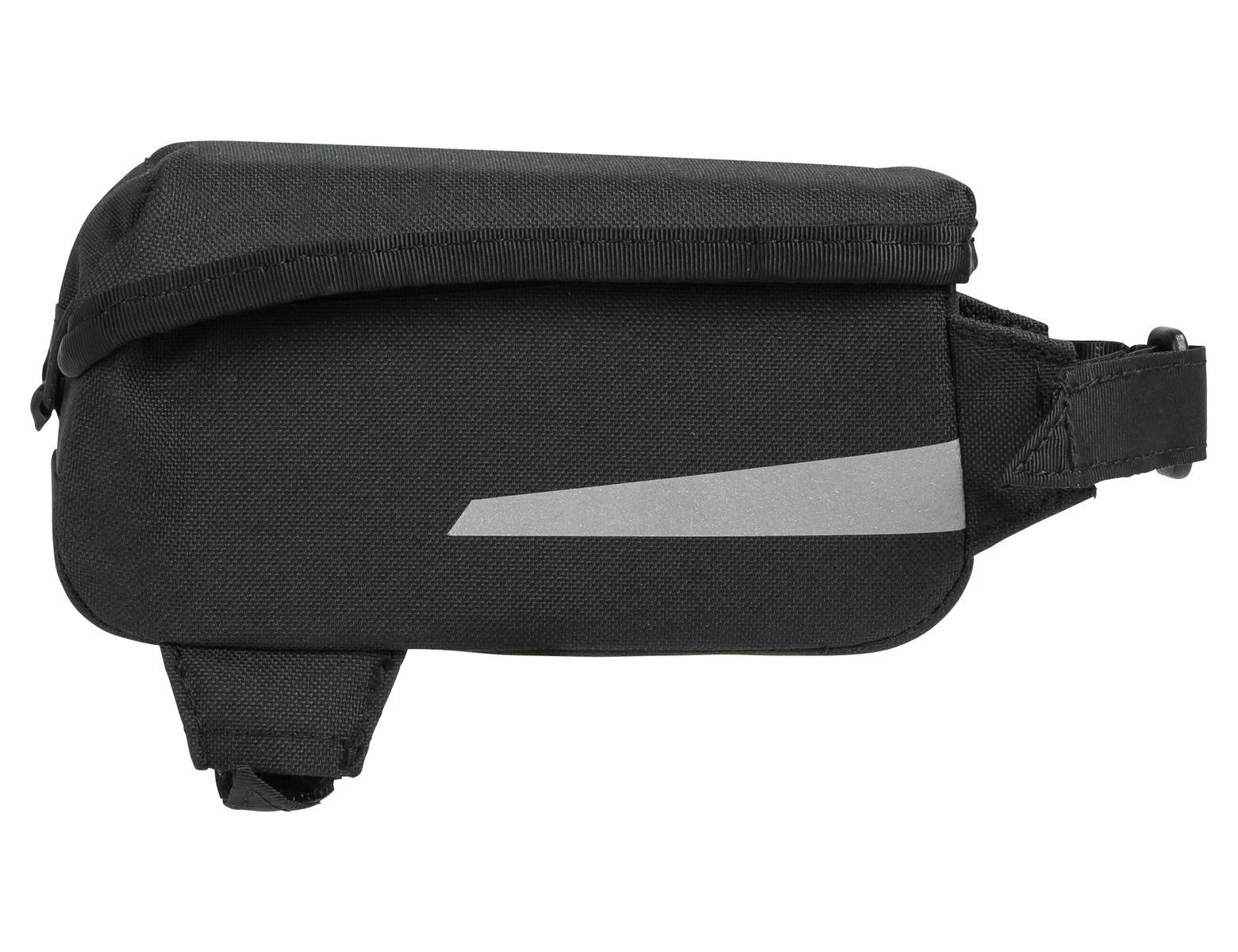 Vorne dabei. Die kompakte Tasche wird zum schnellen Zugriff auf dem Oberrohr Deines Lenkers befestigt. Innen weich gepolstert, verstaust Du darin z.B. den Powerriegel, Dein Handy oder ein paar Notgroschen.