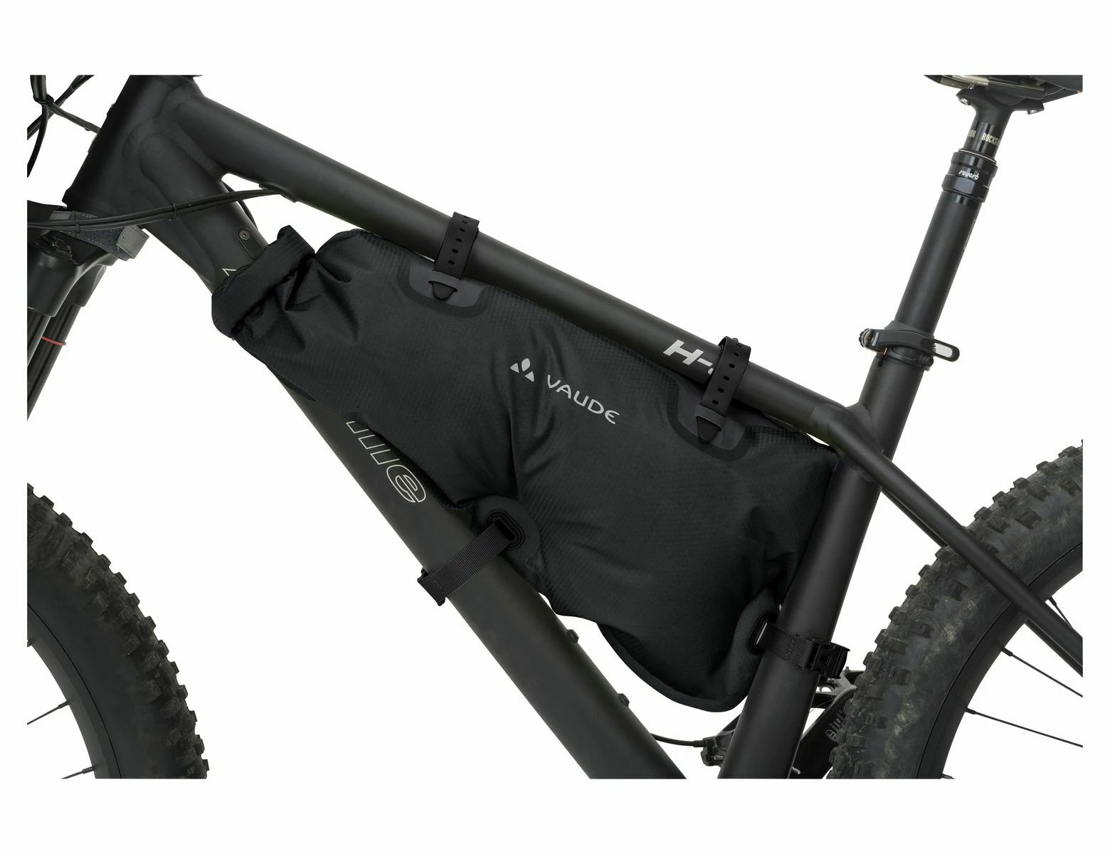 Entdecke Deine Lebensfreude! Du liebst es, auf Deinen Touren jeden Tag an einem anderen Ort aufzuwachen!? Mit dem Wissen, dass auf Dich und Deine Freunde ein Tag voller Bikespaß zukommt? Mit der wasserdicht verschweißten Rahmentasche aus PVC-freiem Planen-Material wirst Du Deinen Schalfplatz bald kennenlernen. Der einfach zugängliche Packsack mit 8 Liter Volumen eignet sich durch seinen niedrigen Schwerpunkt hervorragend für schwere Gepäckstücke wie Werkzeug, Campingkocher oder Proviant. Praktisches Feature: Die unteren 2 Befestigungsriemen können entfernt werden, wodurch der Packsack in der Länge verstellbar ist und auch an Bikes mit Hinterradfederung angebracht werden kann. Weitere Befestigungsriemen werden durch haftstarke, gummierte Bänder am Oberrohr befestigt. Dieses Produkt ist mit Eco Finish umweltfreundlich wasserabweisend ohne Fluorcarbone (PFC) hergestellt. Das VAUDE Green Shape-Label steht für ein umweltfreundliches, funktionelles Produkt aus nachhaltigen Materialien.
