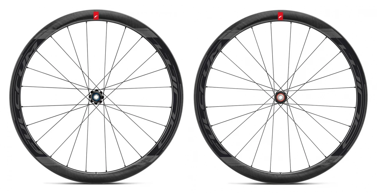 Das System verfügt auch über mittels CNC-Verfahren gebaute Aluminiumnaben, auf denen die 24 Straight-Pull-Speichen montiert sind. Es sorgt für die hohe Steifigkeit der Baugruppe, sowohl beim Beschleunigen als auch beim Bremsen, ohne Einwirkungen durch die asymmetrische Bauweise der Scheibe und der Kassette.