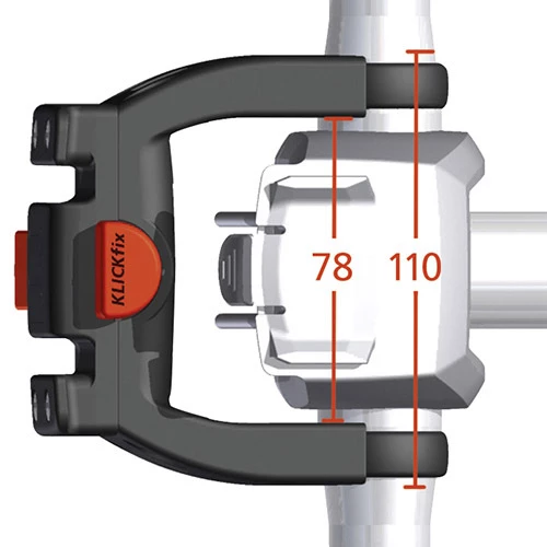 Diese Adapter Version kann zusätzlich zu einem e-Bike Display montiert werden. Die extra weite Montagebrücke umschließt das Display, so daß dieses nicht ummontiert werden muss. Der Adapter ist nach vorne 22mm länger gegenüber der Standardversion. Abstand innen 78mm, Breite 110mm. Mit zwei Paar Schellen für Lenker mit Ø 22-26mm + oversize Schelle für Ø 31,8mm.