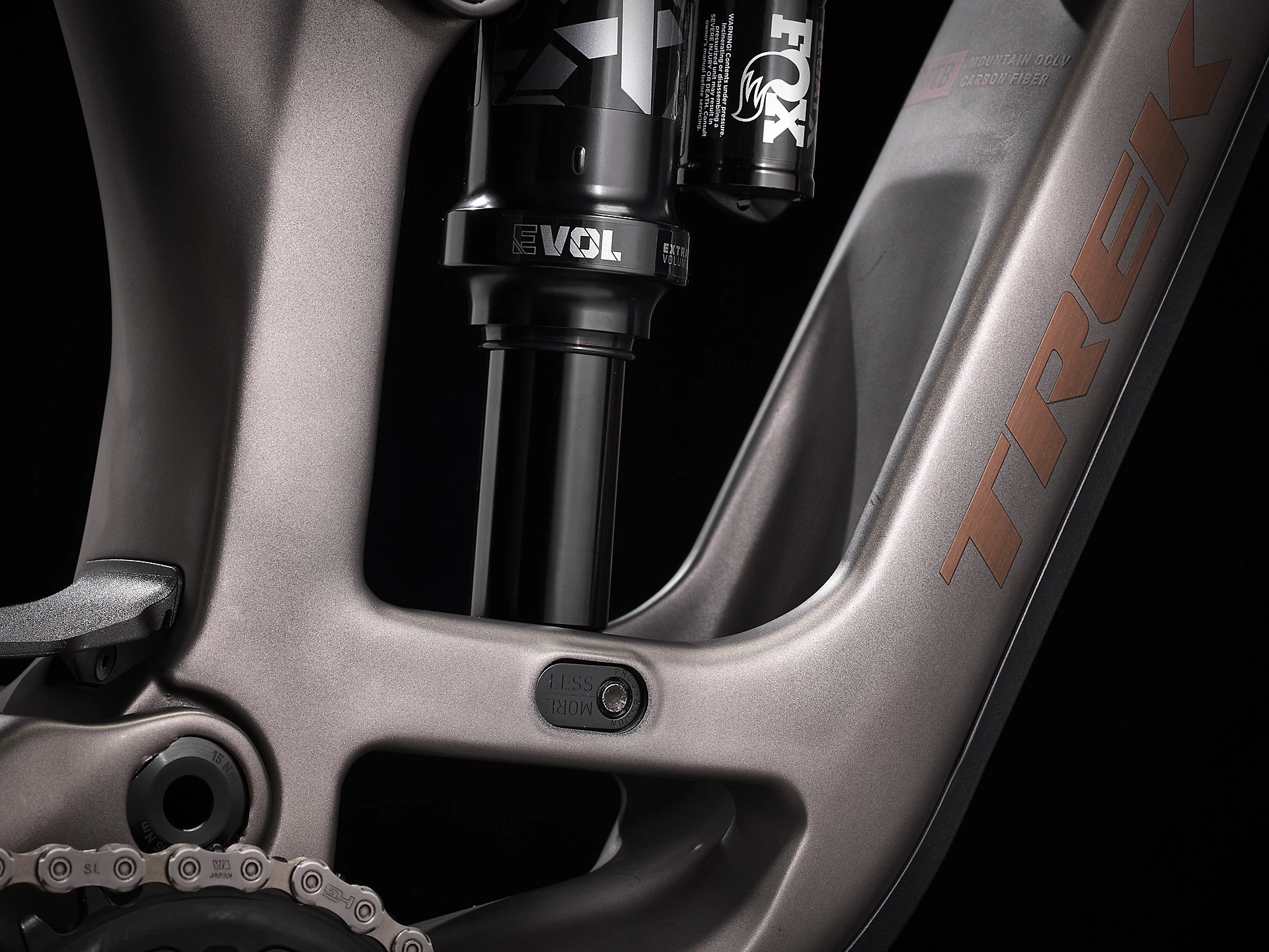 Einen leichten und steifen Vollcarbonrahmen, eine FOX Rhythm 36-Gabel mit 150 mm Federweg, Float EVOL-Luftfeder und GRIP-Dämpfung für eine optimierte Performance bei kleineren Unebenheiten und einen FOX Performance Float X-Dämpfer. Dazu gibt‘s einen perfekten Mix aus Shimano SLX/XT-Komponenten für präzise Schaltvorgänge und hohe Zuverlässigkeit auf dem Trail. Und zu guter Letzt bekommst du eine verstellbare Geometrie und ein im Unterrohr integriertes Staufach.