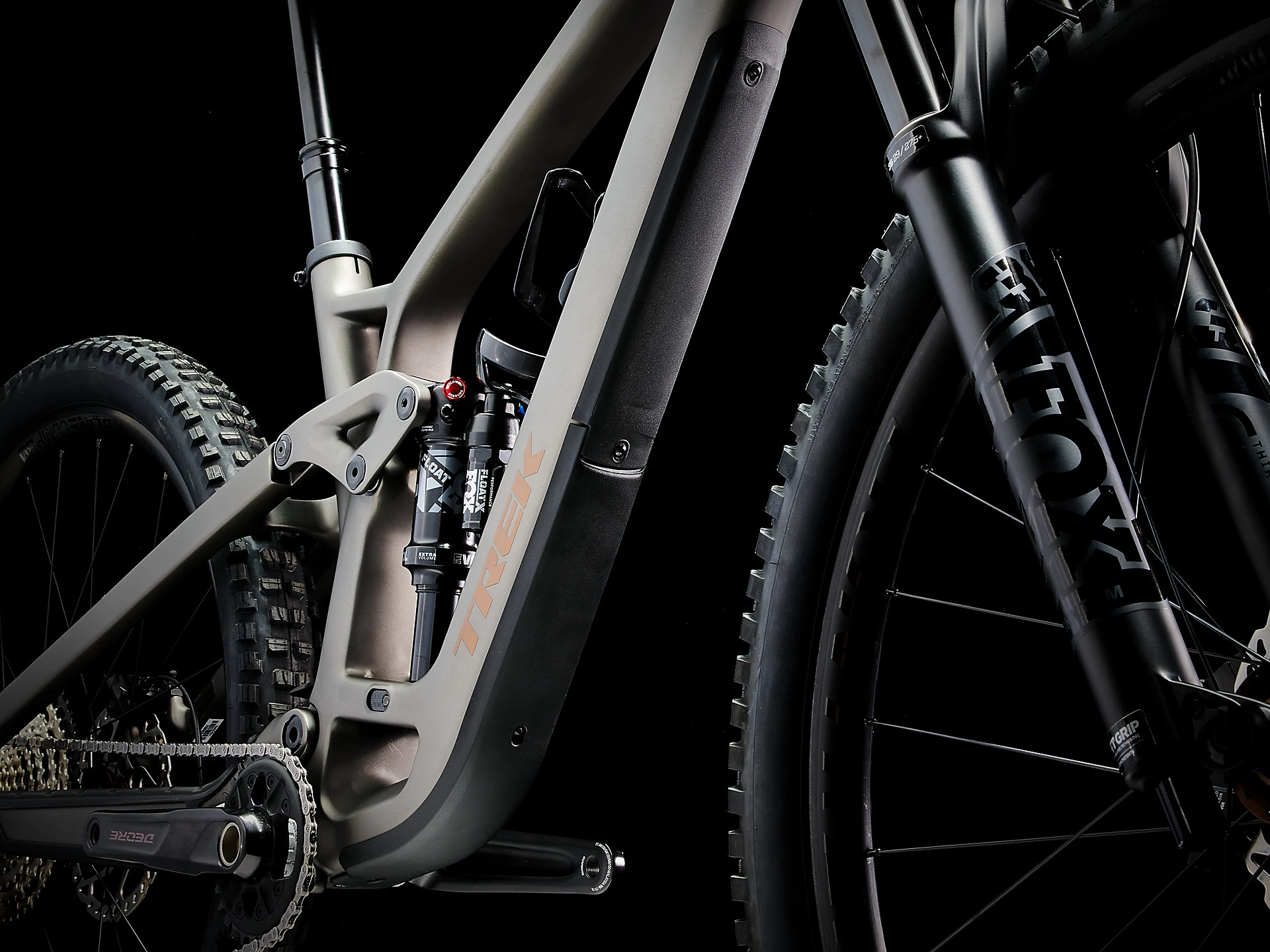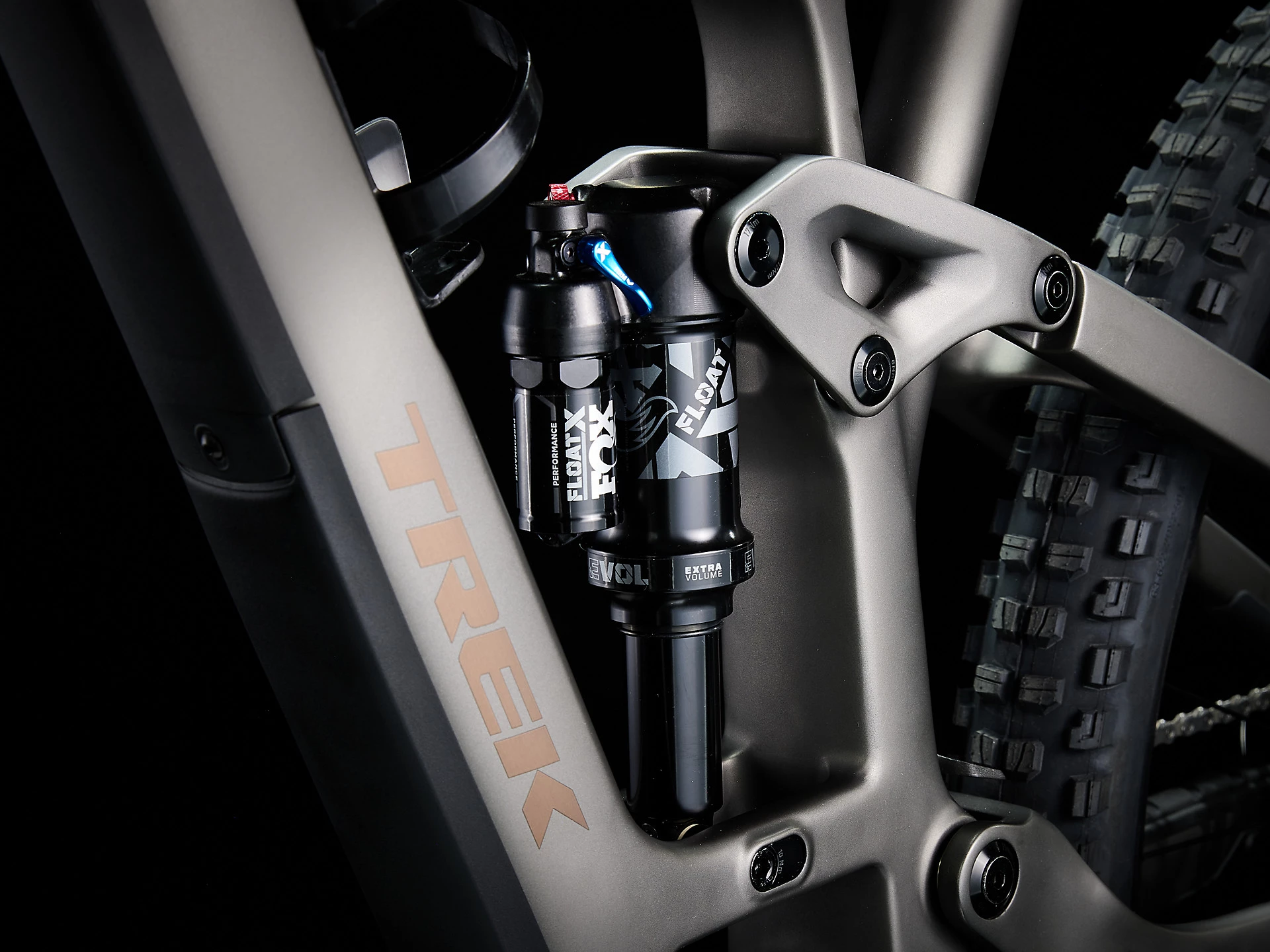 Das Fuel EX 9.7 ist eine All-Mountain-Bestie, die mit einem herausragenden Verhältnis aus Performance-Teilen und geldbeutelfreundlichen Komponenten glänzt, ohne irgendwo zu knausern. Es punktet mit einem leichten Carbonrahmen, einem sorgfältig ausgewählten Mix an Shimano SLX/XT-Komponenten und einem ultrageschmeidigen FOX-Fahrwerk mit 150 mm vorderem und 140 mm hinterem Federweg.
