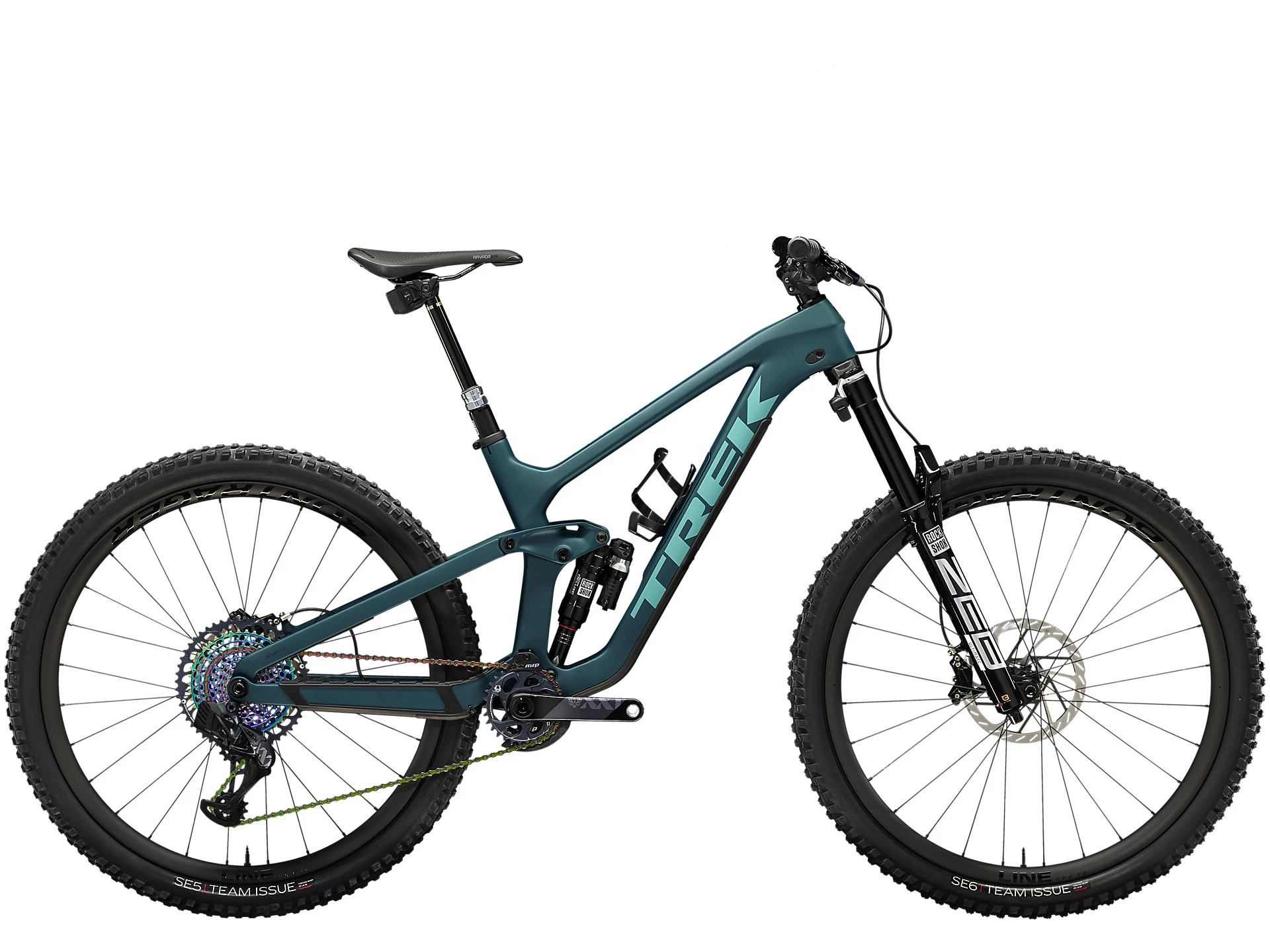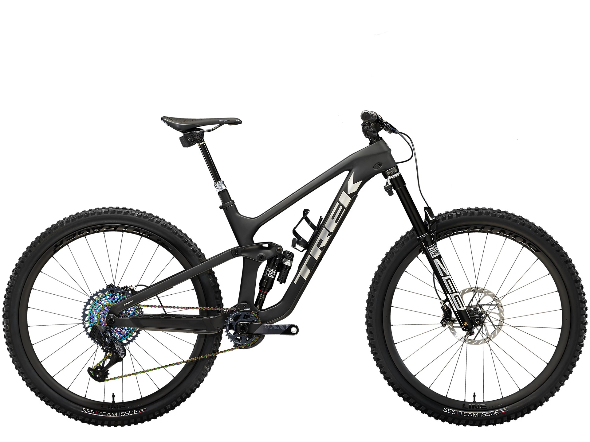 Einen Rahmen aus OCLV Mountain Carbon mit 160 mm Federweg, einen RockShox Super Deluxe Ultimate-Dämpfer mit überarbeiteter Thru Shaft-Dämpfung und eine RockShox ZEB Federgabel mit bulligen 38-mm-Standrohren und automatischer Flight Attendant-Technologie. Außerdem kommt es mit einem SRAM XX1 Eagle 12x-Antrieb, einer integrierten Bontrager RSL-Lenker/Vorbau-Einheit und Bontrager Line Pro 30-Carbonlaufrädern samt Rapid Drive-Hinterradnabe mit 108 Zähnen für eine verzögerungsfreie Beschleunigung in den entscheidenden Momenten.